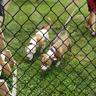 The downside is that they both spent the remained of their time sniffing his trail. They sniffed the fence and laser focused of the path he took to the back field. I tried to get them to do their business, but I finally gave up.