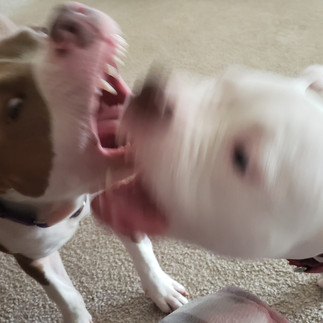 Gotta go Postal so Bonnie and Clyde hop in the truck and take a ride. They are postal bond. Bradley, trying to break the negative pitty image, loves to show off the pups at his work. When they arrived as babies, they were tiny. Everyone loved them, even the ones who were adamantly against all things Pitbull (how can you Not love a puppy?). Now they are larger, stronger, and faster! Will they still feel the same way?